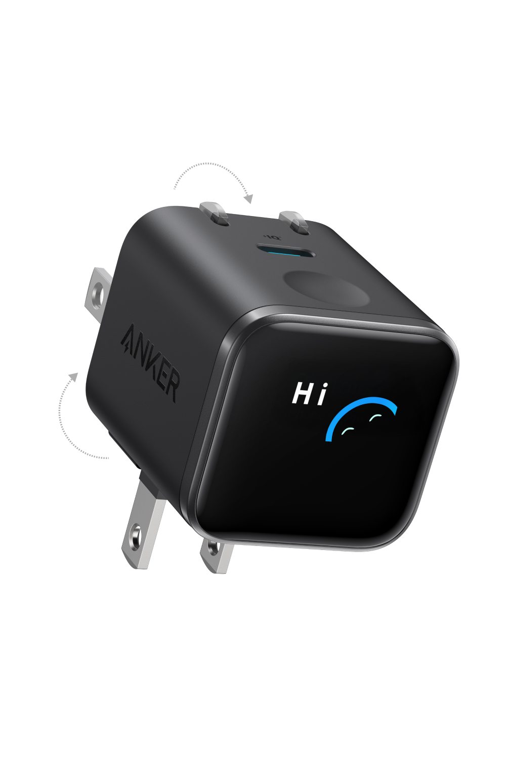 本製品の最大の特徴は、これまでのiPhoneの充電体験をアップデートする高機能スマートディスプレイを搭載している点です 。機器を接続すると、USB Power Deliveryのプロトコルに加え、Anker独自のカスタムAIチップによって接続されたiPhoneのモデル名を検知し、ディスプレイに表示します 。さらに、充電の出力、本体温度、充電の進行状況も表示されるため、最適な充電が行われているかをリアルタイムに確認できます 。充電状況に応じて表情や動きが変化するオリジナルキャラクターの演出も用意されており、充電時間を楽しく彩る工夫が施されています。